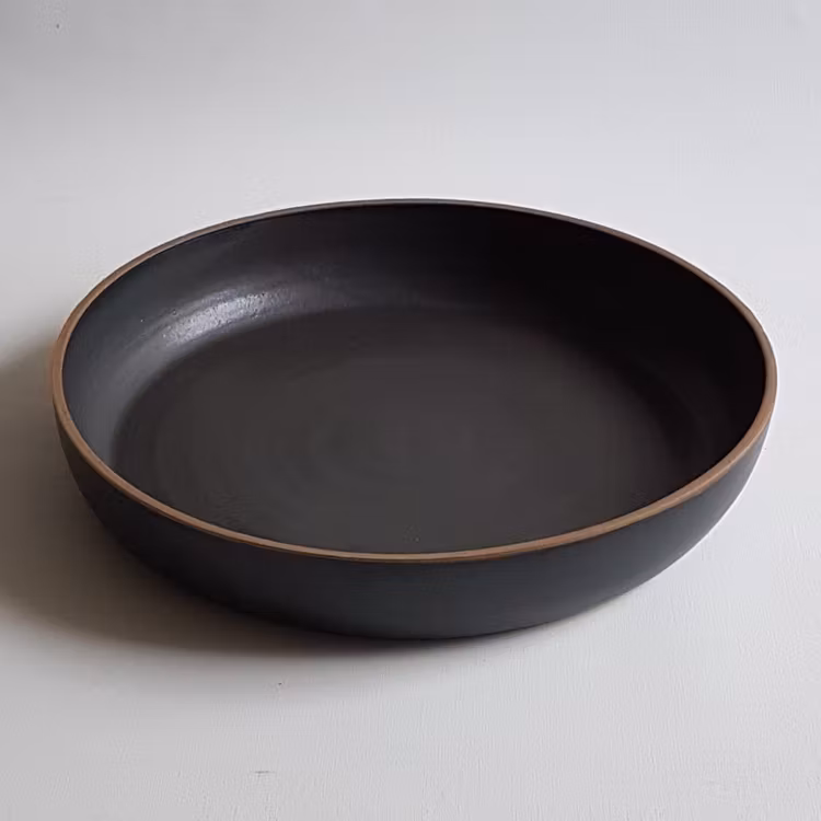 Handdrejad pajform i eldfast stengods. Tål även maskindisk & mikro. Ställ ej formen på kallt underlag när den är het. Även snyggt som salladsfat, fruktfat och uppläggningsfat. Eller varför inte ugnsbakade rotfrukter, potatis eller något annat tillbehör. Kött, fisk eller kyckling. Använd den så ofta du bara kan. Ca 30 cm i diameter, 5 cm hög. Rymmer ca 1,2 l. Finns också i en mindre storlek.