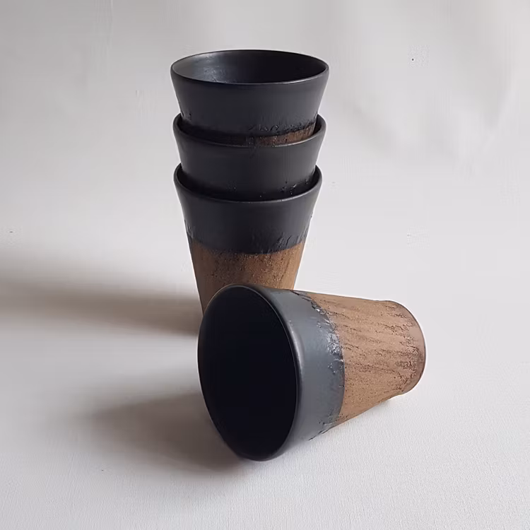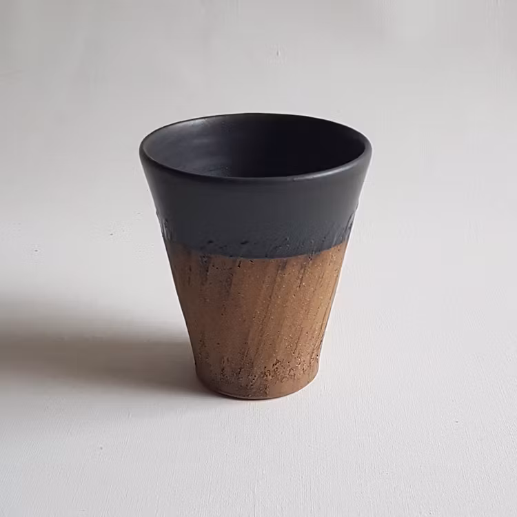 Handdrejad kaffemugg i sandfärgad stengodslera. Passar de flesta kaffemaskiner. Tål maskindisk och mikro. Det här är en kaffemugg som är ”lagom stor” och staplingsbar. Höjd ca 10 cm, diameter ca 9 cm. Rymmer ca 2,5 dl.
