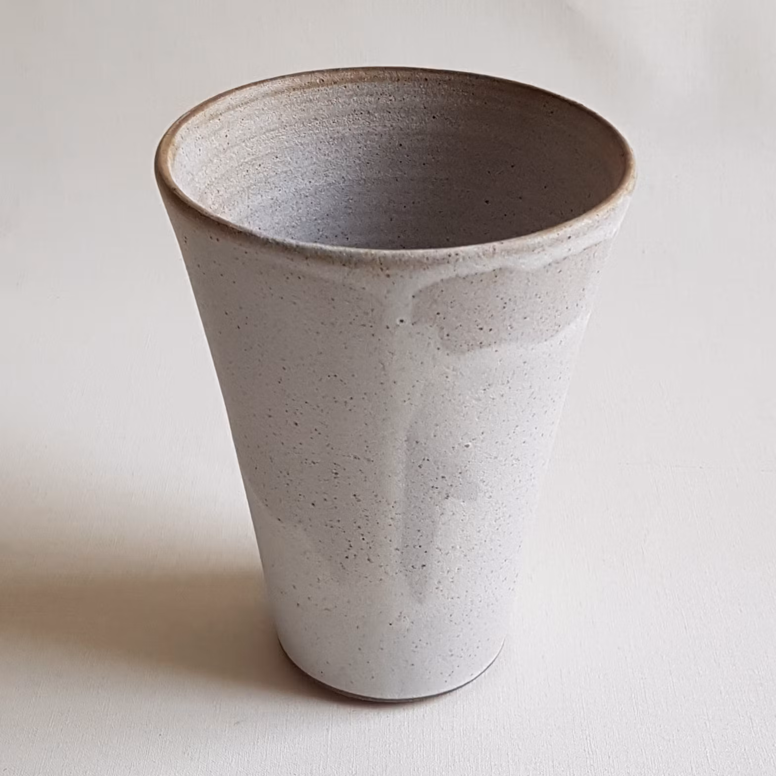 Handdrejad stor lattemugg i sandfärgad stengodslera. Tål maskindisk och mikro. Muggen för dig som gillar stora stapelbara muggar. Höjd ca 13 cm, diameter ca 9 cm. Rymmer ca 4 dl.
