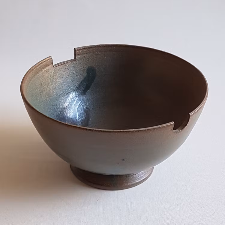 Den här serien kallar jag för Bosco, som betyder skog på italienska. Färgen går ifrån grön till, ibland svart och ibland brunt där lerfärgen lyser igenom. Den påminner just om skogens variation i färger. Känslan på glasyren är ganska mjuk, matt men inte sträv. Inget bly eller kadmium ingår i mina glasyrer.