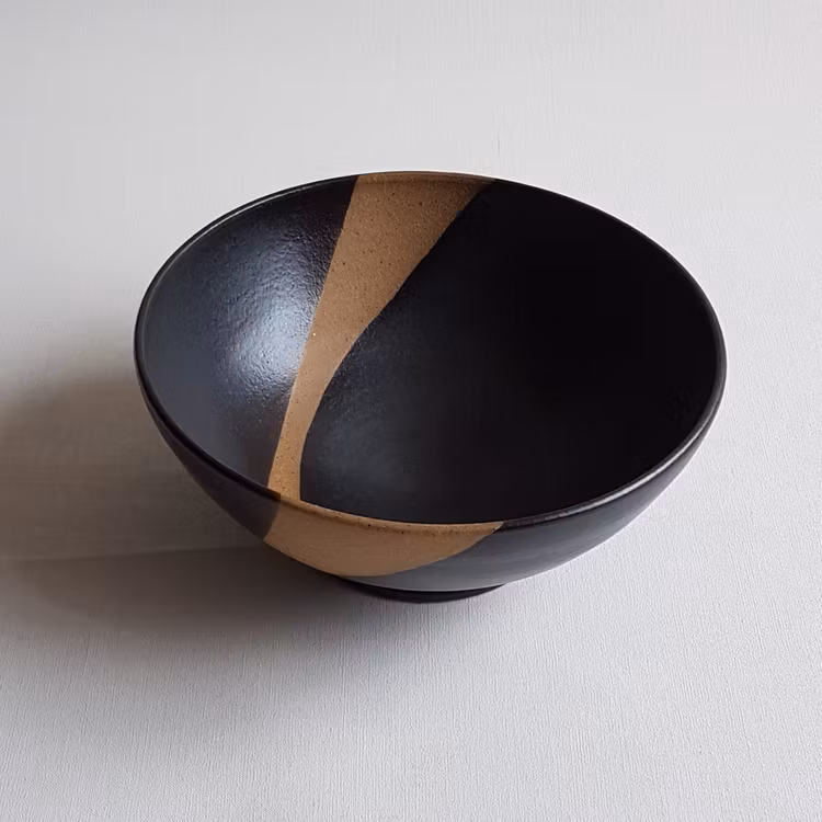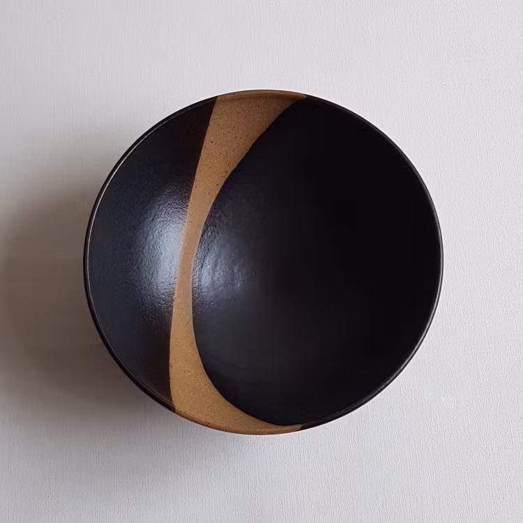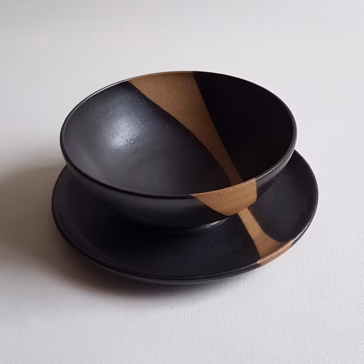Den här serien kallar jag för Savann, Svart glasyr med en rå kant eller strimma för tankarna till savannen i skymning. Om jag ska försöka beskriva den svarta glasyren så är den mjuk i känslan. Färgen påminner om svart / grå metall. Den råa kanten / strimman är lerans egna färg, som sand.