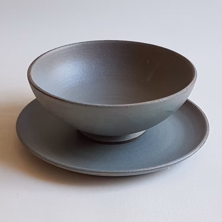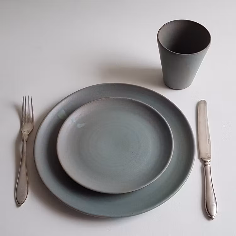 Assiett med låg kant i Serien Råsiden / Grågrön