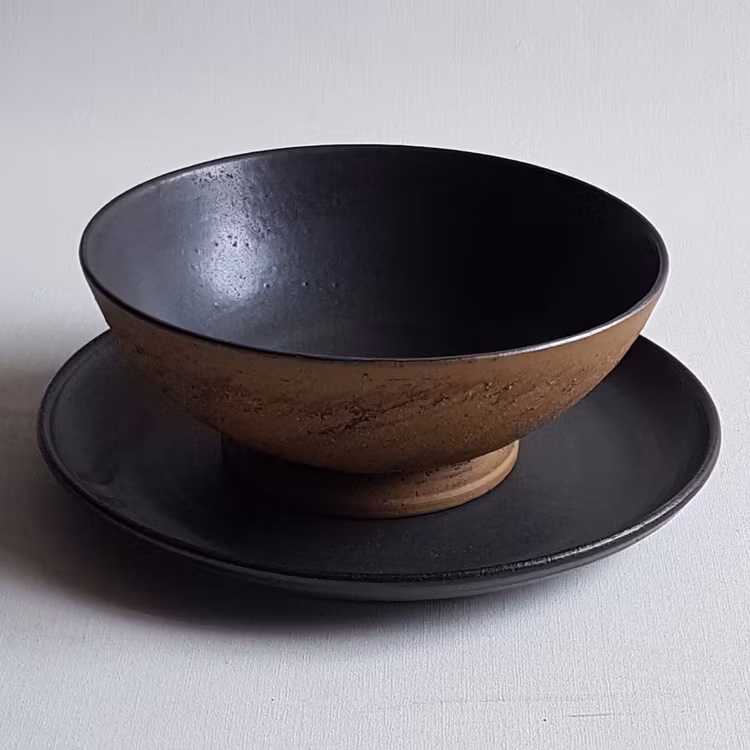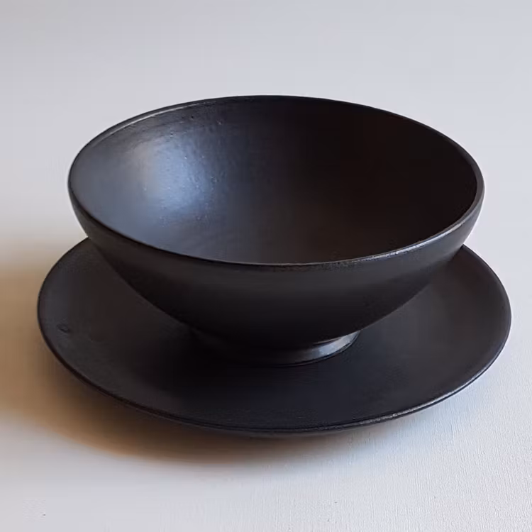 Den här serien kallar jag för svart granit, om jag ska försöka beskriva den så är glasyren mjuk i känslan. Färgen påminner om svart granit, som någon gång ibland kan ha ett skimmer av grått. Inget bly eller kadmium ingår i mina glasyrer.