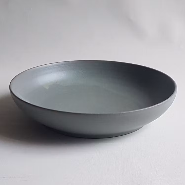 En handdrejad djuptallrik i sandfärgad stengodslera som passar både till vardag och fest. Passar bra till pasta och sallad. Ja egentligen till vad som helst, som tex en snygg efterrätt. Den är ca 23 cm i diameter, höjd ca 5 cm. Tål maskindisk och mikro.