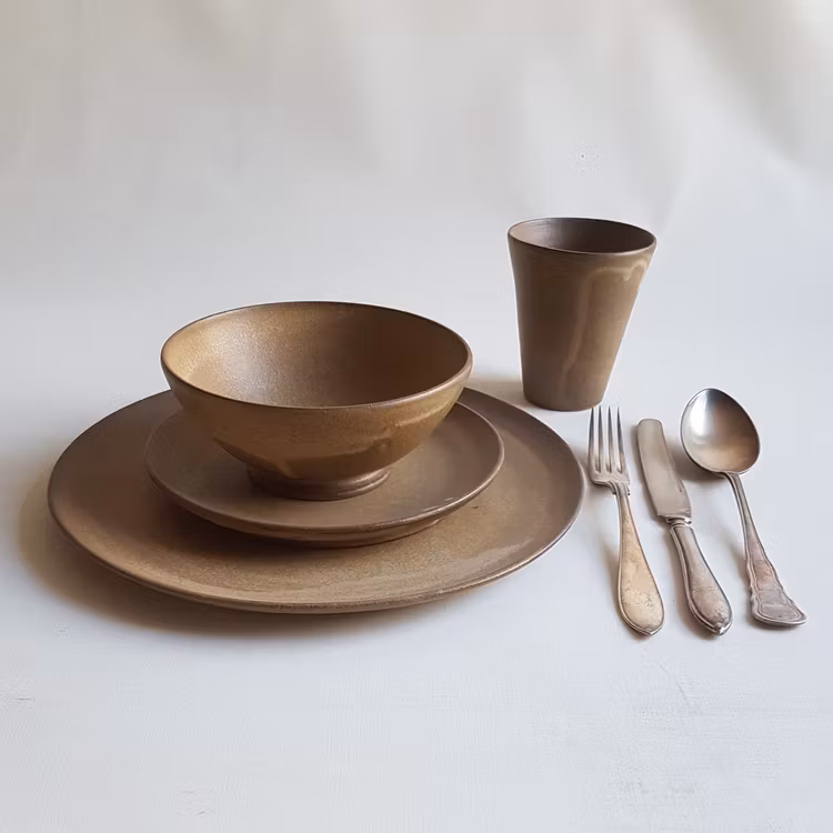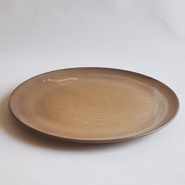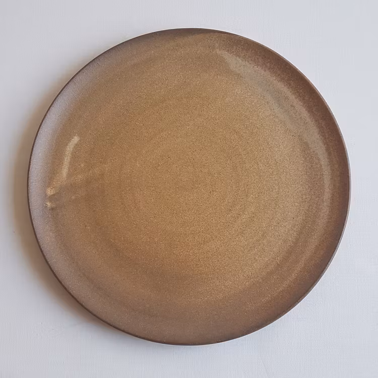 En handdrejad mattallrik i sandfärgad stengodslera som passar både till vardag och fest. Den är ca 27 cm i diameter och har en lite lägre kant. Tål maskindisk och mikro.