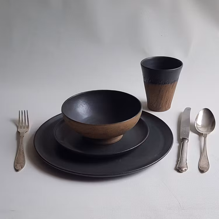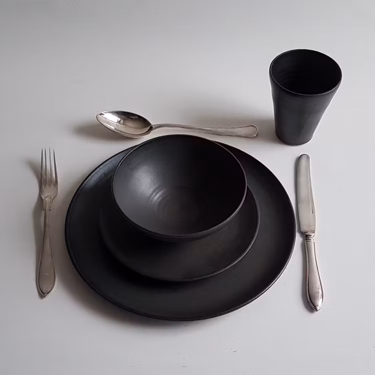 Den här serien kallar jag för svart granit, om jag ska försöka beskriva den så är glasyren mjuk i känslan. Färgen påminner om svart granit, som någon gång ibland kan ha ett skimmer av grått. Inget bly eller kadmium ingår i mina glasyrer.