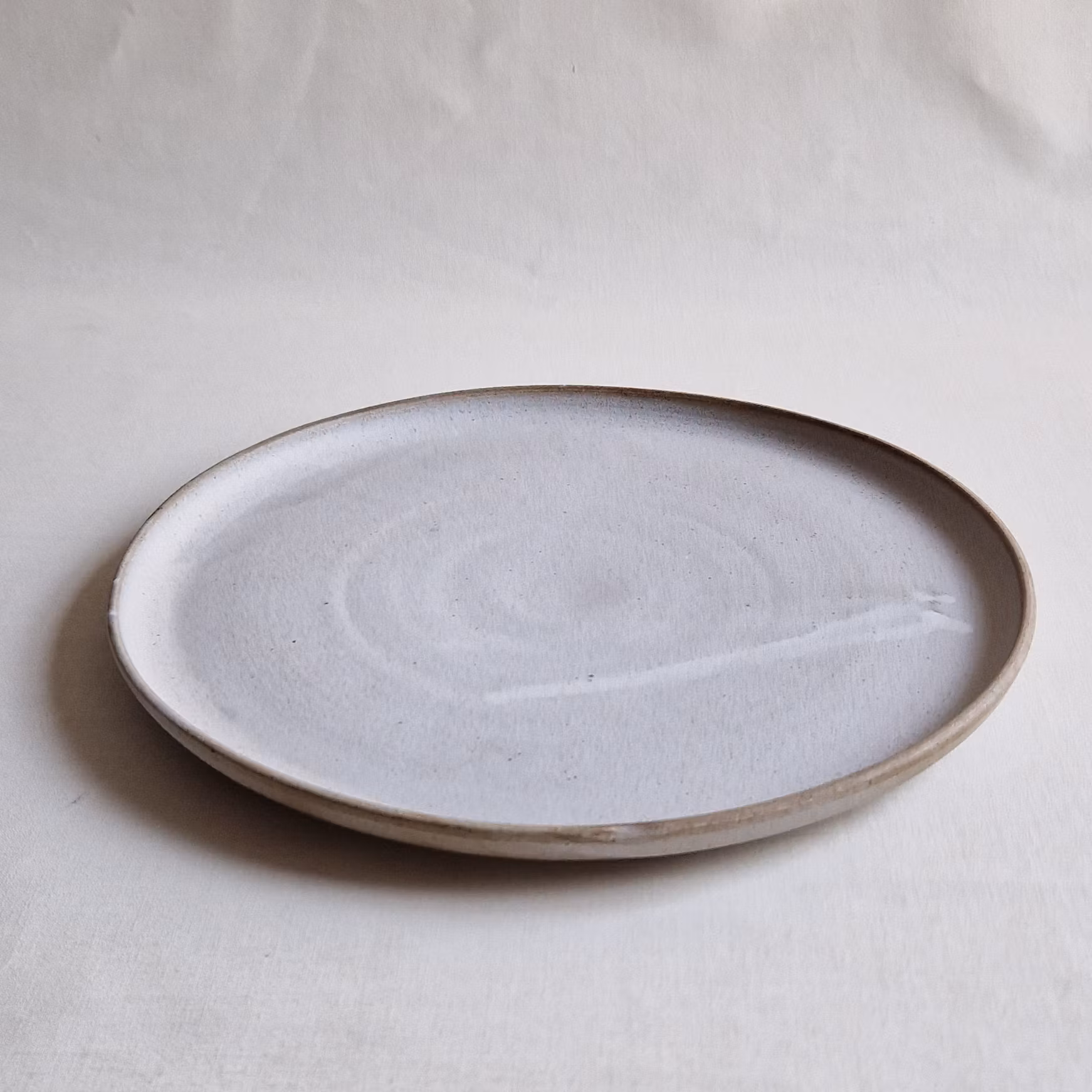 En handdrejad mattallrik i sandfärgad stengodslera som passar både till vardag och fest. Den är ca 27 cm i diameter och har en lite lägre kant. Tål maskindisk och mikro.