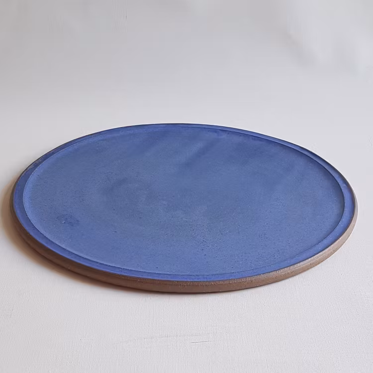 Handdrejad ostbricka i Sandfärgad stengodslera. Använd även som tårtfat, uppläggningsfat och ljusfat. Ca 30 Cm i diameter. Tål maskindisk och mikro.