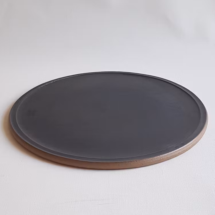 Handdrejad ostbricka i Sandfärgad stengodslera. Använd även som tårtfat, uppläggningsfat och ljusfat. Ca 30 cm i diameter. Tål maskindisk och mikro.
