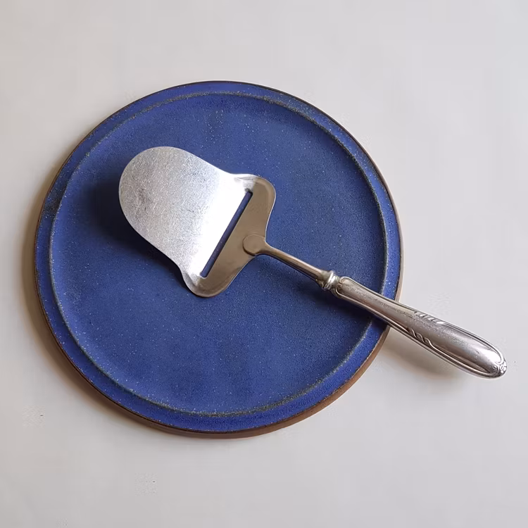 Handdrejat fat i stengods att lägga osten på. Perfekt för dig som tröttnat på att osten går av när den ligger som i en ”skål” på en assiett. Ca 21 Cm i diameter. Använd gärna som uppläggningsfat eller som ljusfat. Tål maskindisk och mikro.