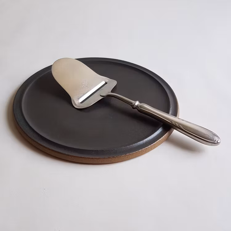 Handdrejat fat i stengods att lägga osten på. Perfekt för dig som tröttnat på att osten går av när den ligger som i en ”skål” på en assiett. Ca 21 Cm i diameter. Använd gärna som uppläggningsfat eller som ljusfat. Tål maskindisk och mikro.